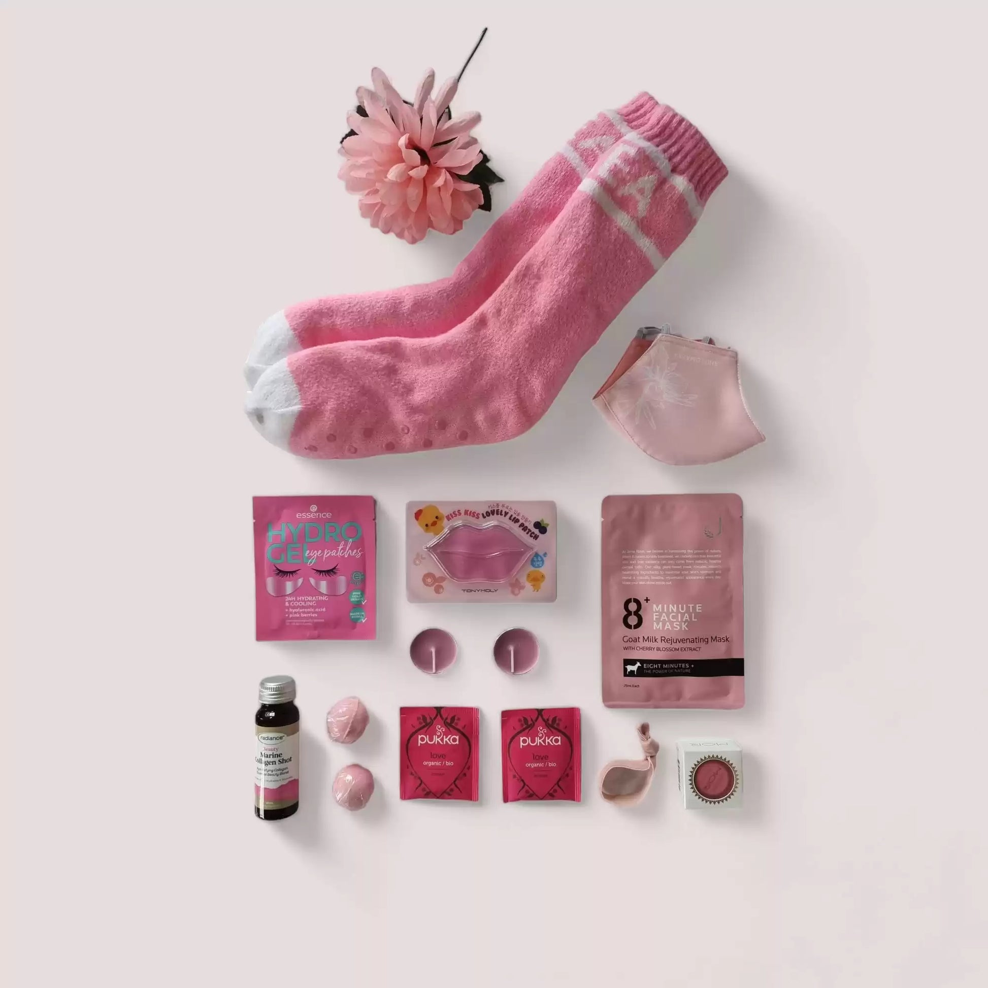 - Revitalizing goat milk cherry blossom FACE MASK luscious Tony Moly LIP MASK, and hydrogel EYE MASK to pamper the senses.